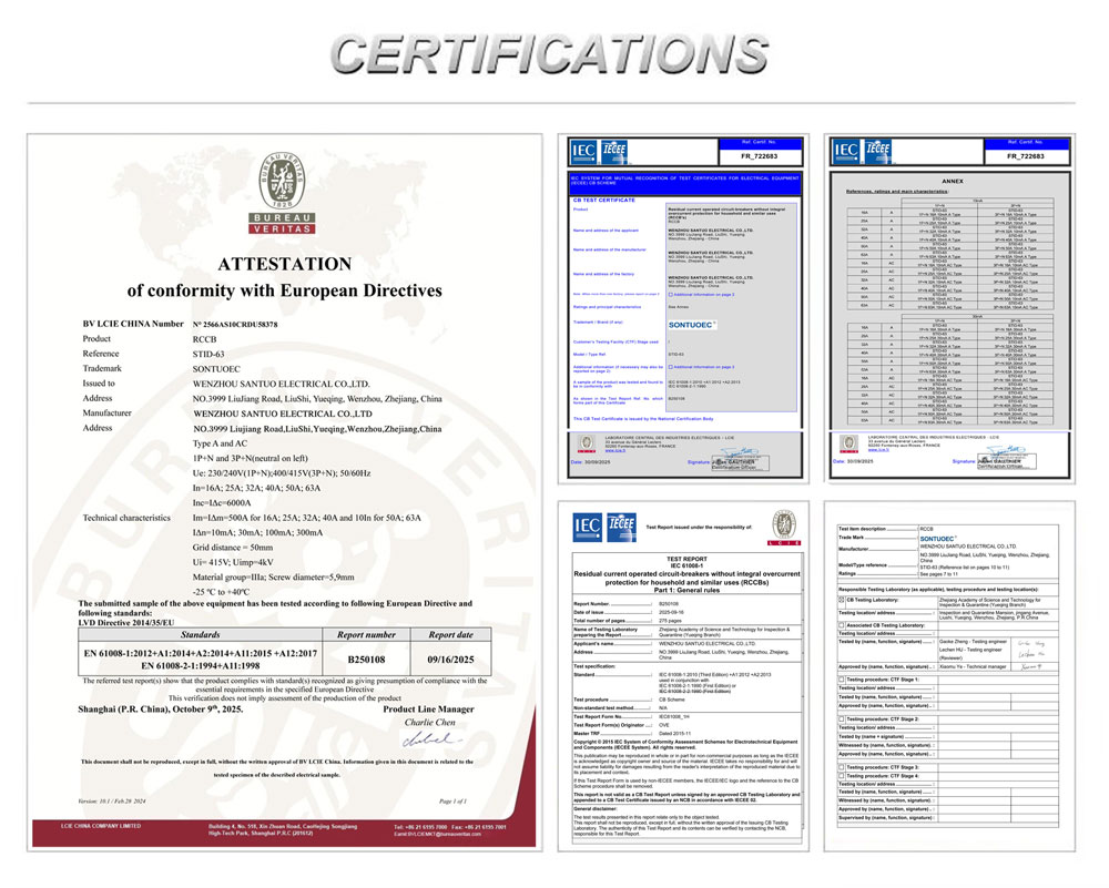 Sontuoec yog ib qho ntawm cov chaw muag khoom Suav / cov tuam ntxhab tshwj xeeb hauv ntau cov khoom siv hluav taws xob. STID-63 Series RCCB 230V 63A Residual Riam Txoj Kev Txom Nyem Tam Sim No Tuaj Rau Ib Theem 240V, Peb Theem 415V, 50 lossis 60Hz. Ua raws li IEC61008-1 tus qauv.
